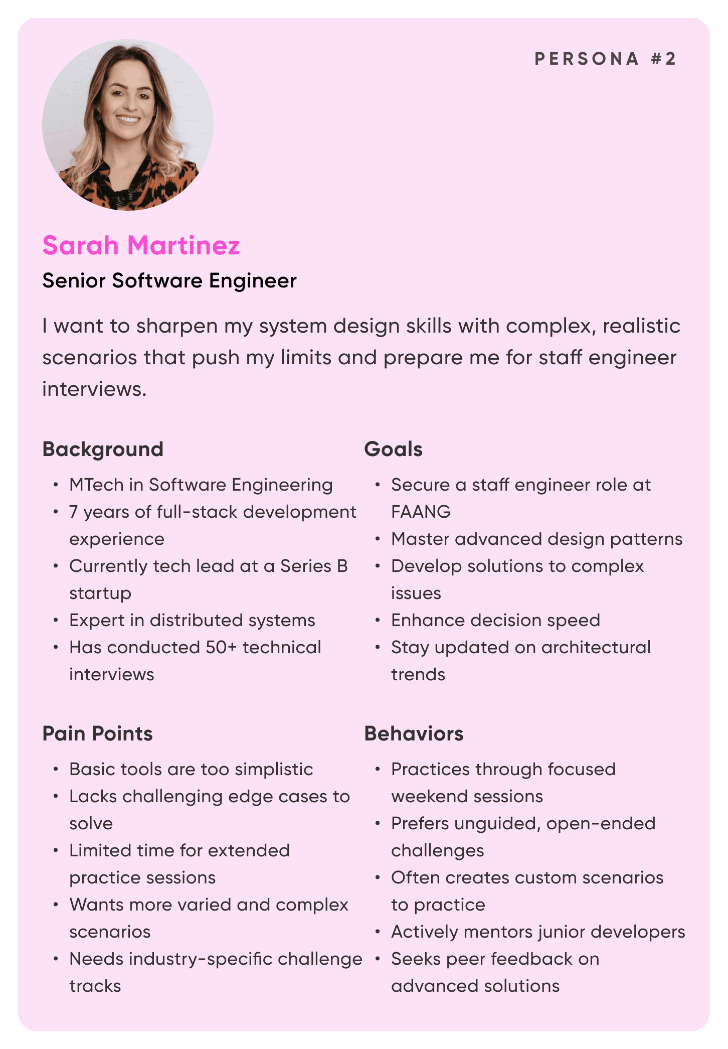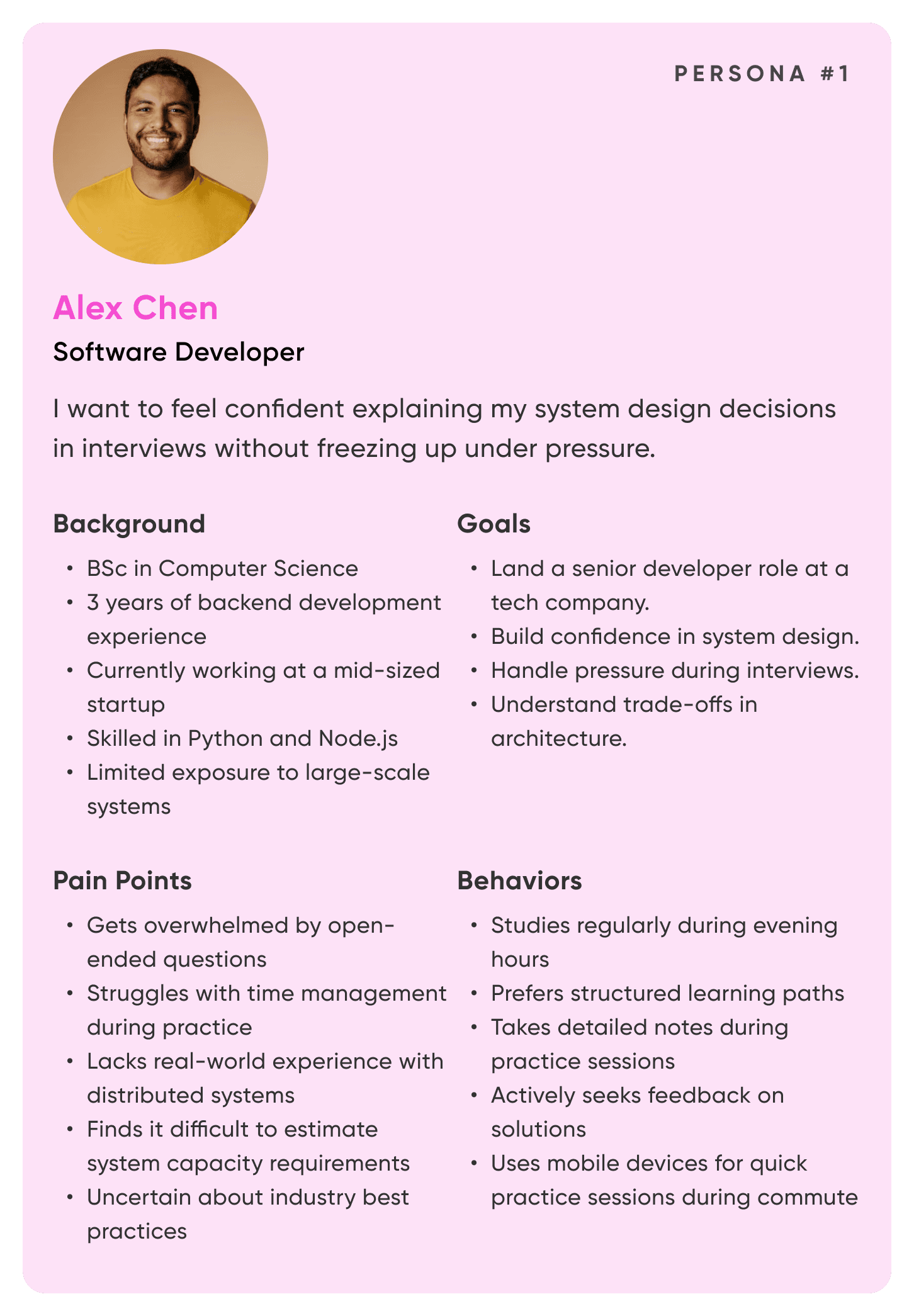 Developers need a more engaging and realistic way to practice system design interviews that builds both technical competence and interview confidence.