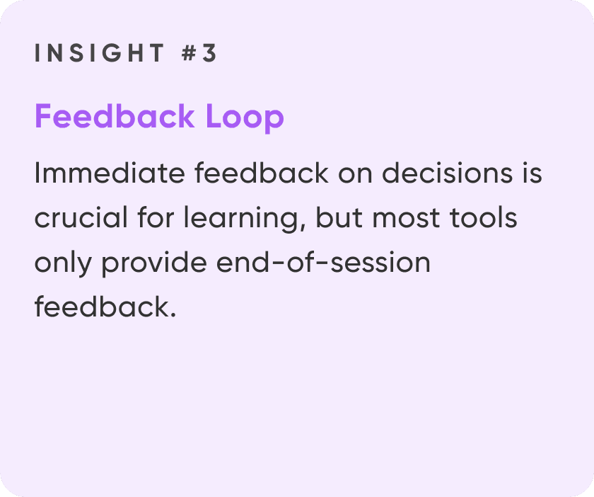 After completing challenges, users can delve into a detailed breakdown of their decisions, understanding the rationale and impact behind each one. Performance metrics highlight strengths and areas for improvement, while personalized improvement suggestions guide users toward better outcomes. To support continuous learning, tailored resources are provided for further exploration and skill enhancement.