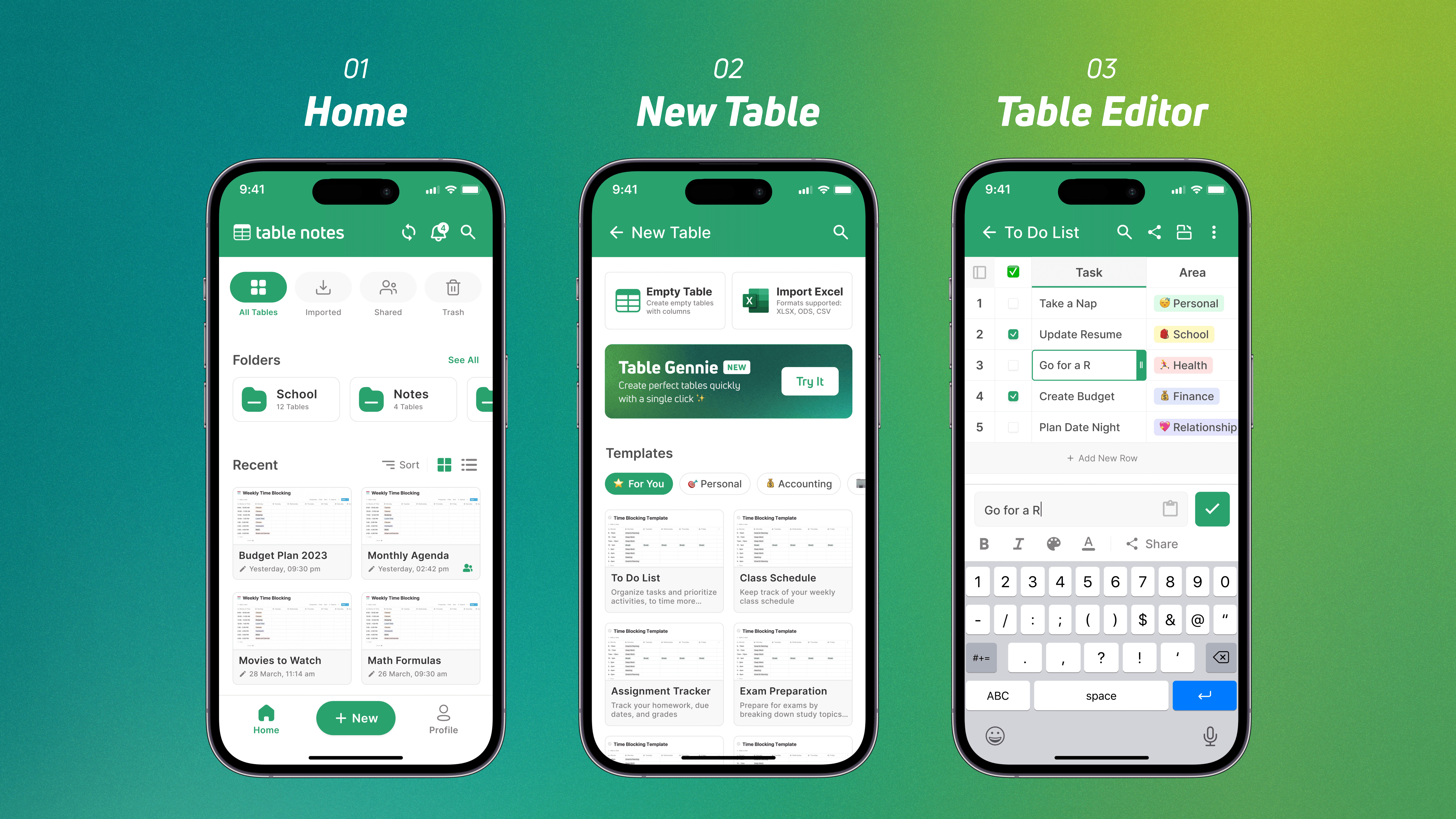 Table Notes: Spreadsheets on the Go